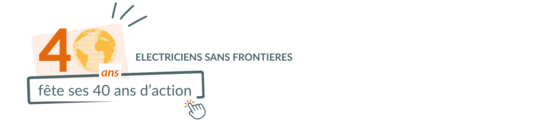 Electriciens sans frontières, ONG de solidarité internationale, lutte depuis 1986 contre les inégalités d’accès à l’électricité et à l’eau dans le monde. Avec le soutien de 1200 bénévoles et en partenariat avec des acteurs locaux, nous favorisons le développement économique et humain en utilisant les énergies renouvelables.