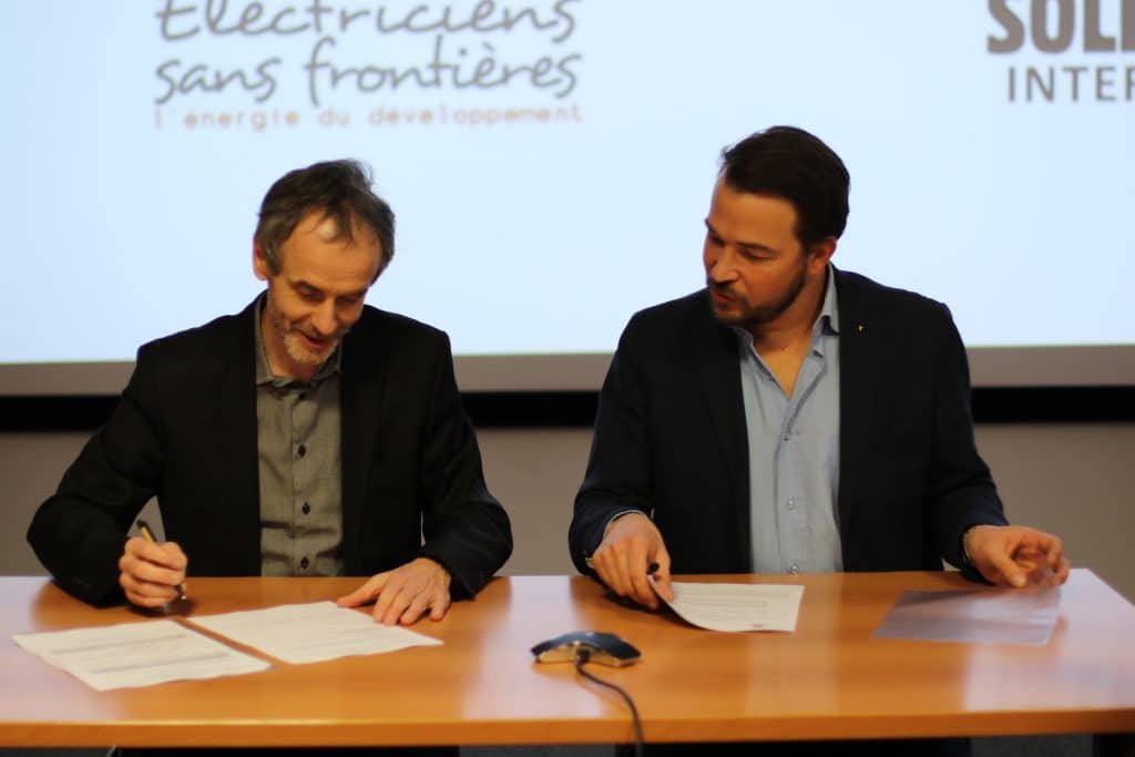 Le 5 mars 2018, les représentants et dirigeants de Solidarités Internationale et d'Electriciens sans frontières se sont rencontrés afin de signer une convention qui formalise leur collaboration.