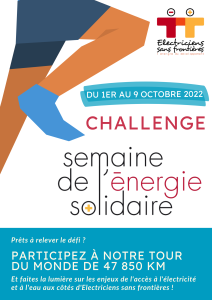 Vous participez au challenge, vous prenez part à un événement ? Postez une photo sur les réseaux sociaux en taguant Electriciens sans frontières et avec le #energiesolidaire et invitez votre entourage à participer !